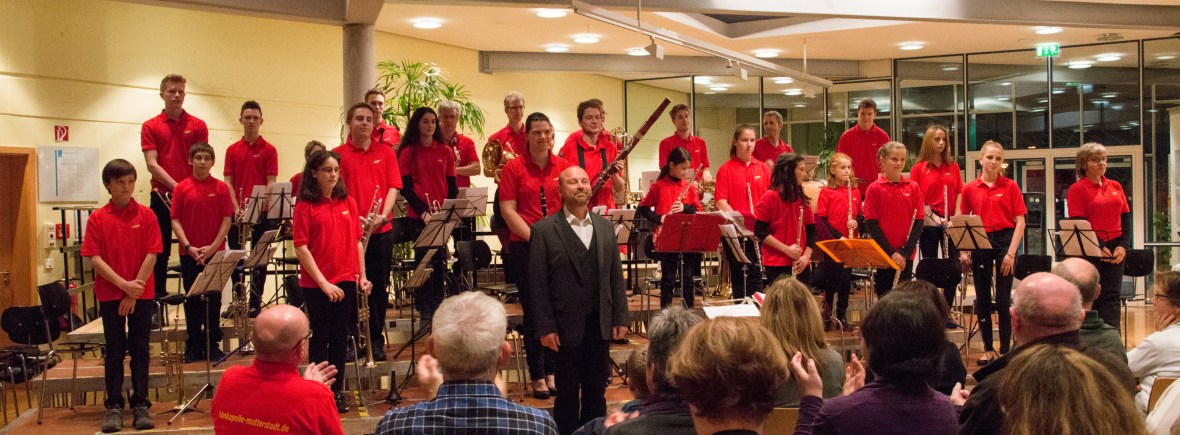 Hier ein Bild der Serenade unseres Jugendorchesters von 2017, unterstützt durch Erwachsene aus dem Großen Orchester. Unsere Jugendlichen haben hier die Möglichkeit, erste Erfahrungen beim Spielen eines Konzertes zu sammeln.